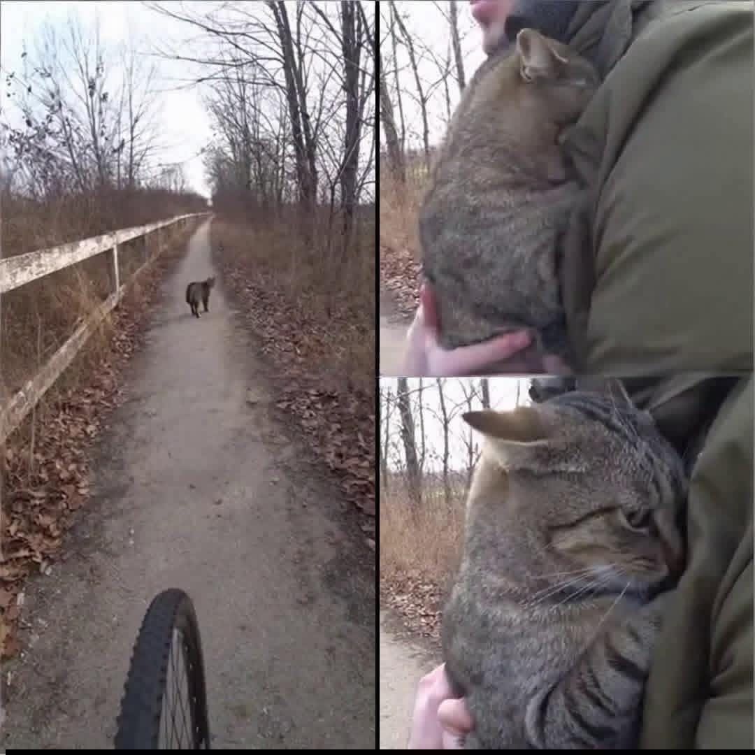 I dropped my bike without thinking and fell to my knees as he launched himself into my arms, clinging to me with a desperation that said he was afraid this might disappear too. He pressed his face into my chest, purring and crying all at once, as if he needed to make sure we were real. I held him and felt time collapse; the year of silence, the waiting, the grief, all of it undone in a single heartbeat.