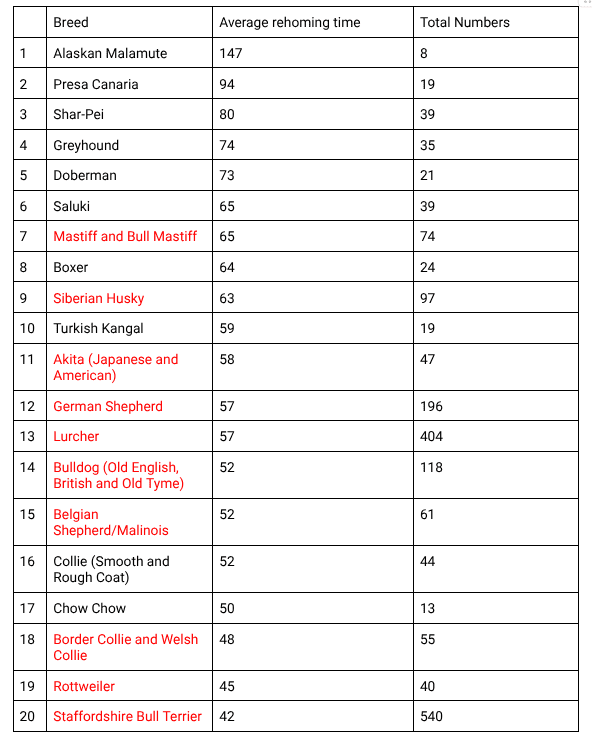 Research from the RSPCA also found that while the average time for all breeds of dogs between being ready to rehome and then finding a loving forever family is 41 days, larger breeds of dogs can wait much longer.