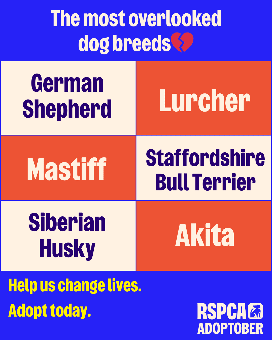 This Adoptober (an annual rehoming drive which aims to shine the spotlight on rescued pets looking for homes) the RSPCA is issuing an urgent plea for adopters to consider larger breeds of dogs – who are often left waiting longer than others for their forever homes.