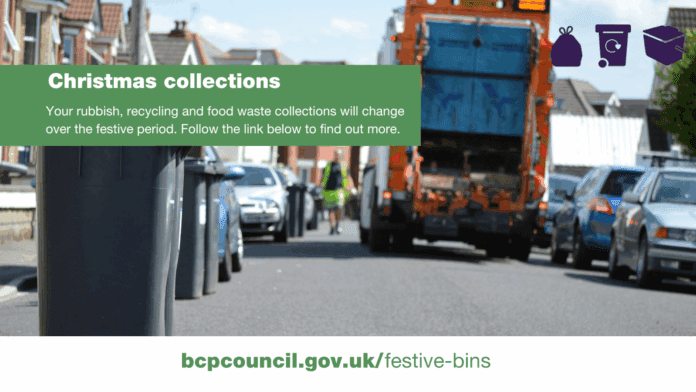 There will be temporary changes to rubbish, recycling and food waste collections over the festive period across Bournemouth, Christchurch and Poole (BCP).