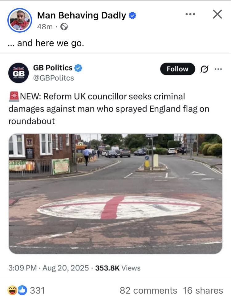 “We’re aware of graffiti featuring national symbols that has appeared on several roundabouts in the Dorset Council area. This paint will be removed shortly, and once the work is complete, we’ll be able to assess the cost – a regrettable expense that ultimately falls to local taxpayers.