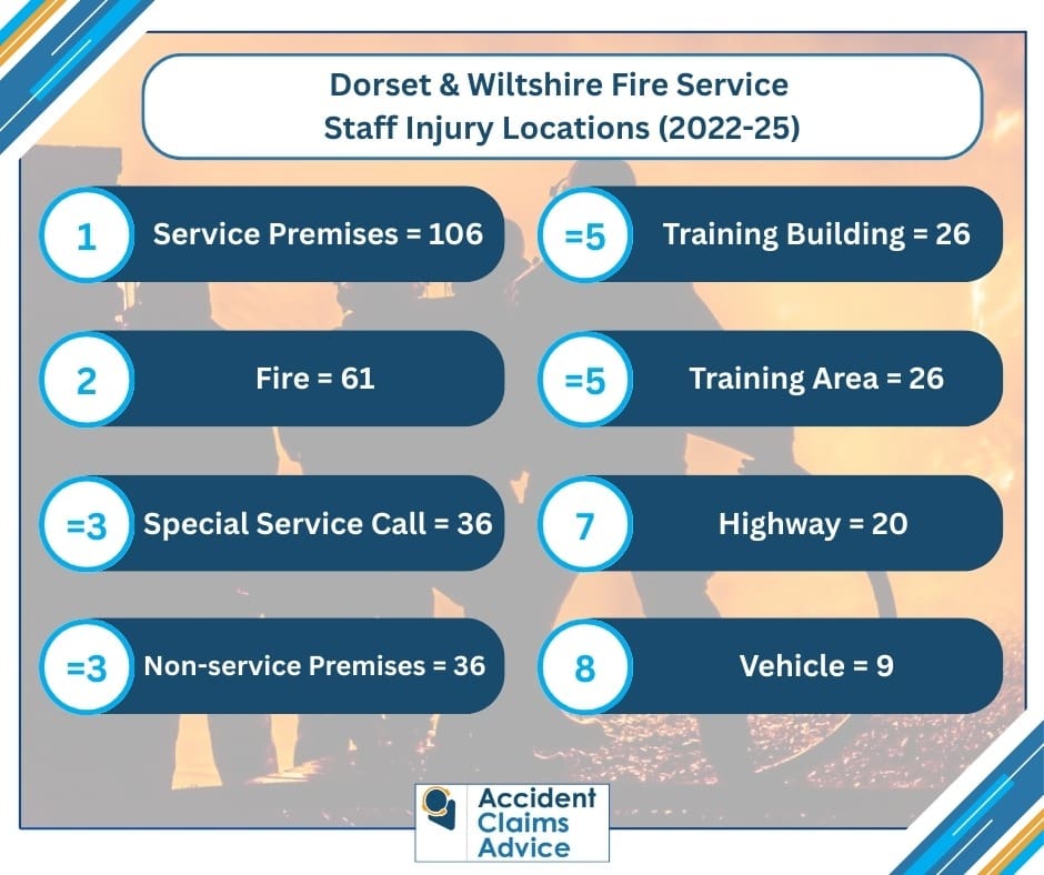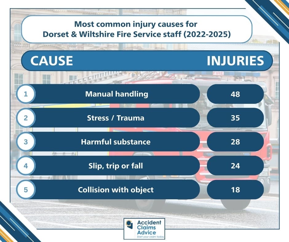Further analysis by Accident Claims Advice identified the most common causes of injury across Dorset & Wiltshire Fire & Rescue Service.