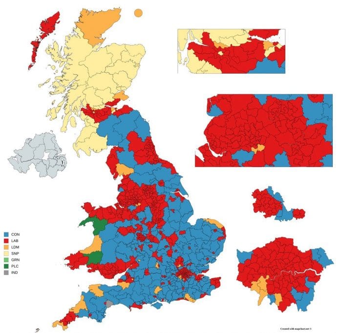 How the UK election map would look if ONLY 25-49s were allowed to vote if an election was held today. (Data from @YouGov, 28-29th Aug).