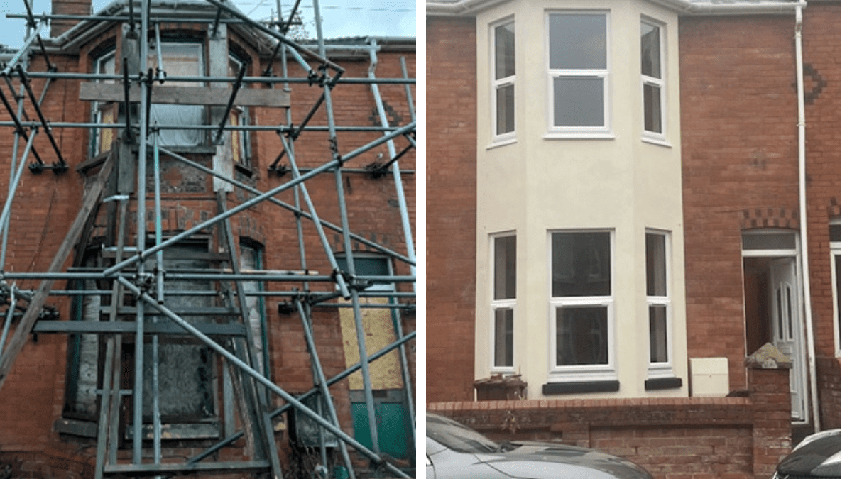 The improvements made to the property included, rebuilding the front bays and rendering the entire front face for stability and safety, a brand-new central heating system, an extra bedroom and a new bathroom; and a completely new kitchen installation and a new extension.