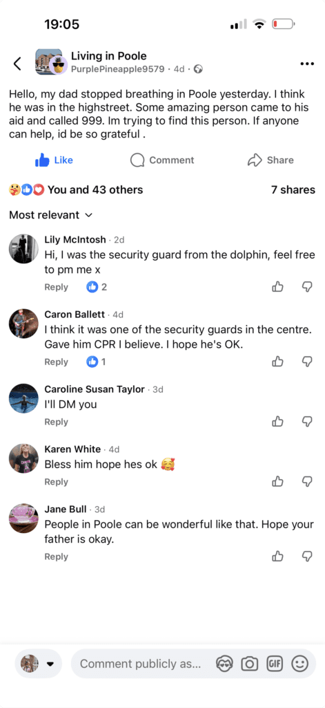 In the middle of an ordinary day on Poole High Street, when life was simply going about its business, something extraordinary happened. A man stopped breathing. In that terrifying moment, a stranger did not hesitate, did not look away, did not weigh up inconvenience or risk. They stepped forward. They called 999. They gave CPR. They chose compassion. That single decision, instinctive, human, decent, is a reminder of who we really are beneath the noise.