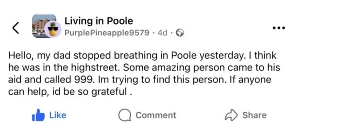 In the middle of an ordinary day on Poole High Street, when life was simply going about its business, something extraordinary happened. A man stopped breathing. In that terrifying moment, a stranger did not hesitate, did not look away, did not weigh up inconvenience or risk. They stepped forward. They called 999. They gave CPR. They chose compassion. That single decision, instinctive, human, decent, is a reminder of who we really are beneath the noise.