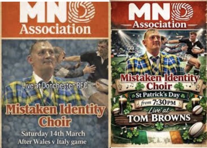 Now, the group’s diary is filling up fast. Mistaken Identity Choir is set to perform before kick-off at Dorchester Town F.C.’s final home game of the season on 25 April, followed by a post-match performance at Dorchester Rugby Club.