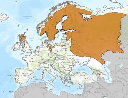 Map showing the breeding distribution of Osprey in Europe (BirdLife International 2015)