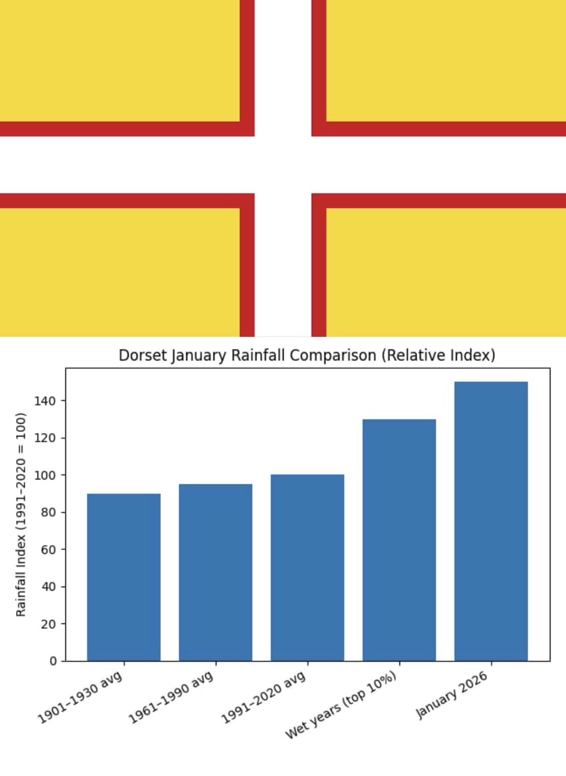 Dorset is used to rain. Its position on England’s south-western edge puts it directly in the path of Atlantic weather systems, and its rolling downs help wring moisture from passing clouds. In an average year, most of the county receives between 800 and 1,000 millimetres of rainfall, with higher totals inland and on elevated ground. Winter is always the wettest season, but this winter feels different.