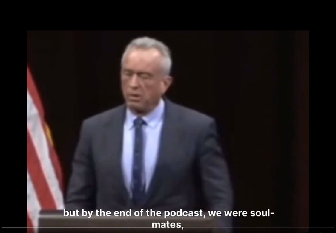 I am not totally sure what RFK Jr. is admitting to here. Is he admitting to befriending a 7-year-old child? (Charlie Kirk was born in 1993). Is he claiming that the 7-year-old child delivered podcasts before they were invented? (The first one was in 2003). Is he claiming to have listened to a 7-year-old child’s podcasts and become soulmates?