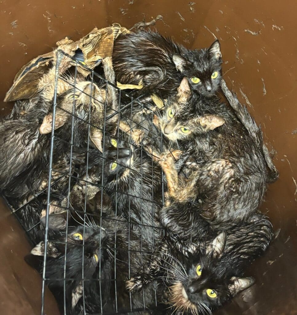 “Those trapped underneath were unable to move, and the ones higher were tangled in a metal grid with no way to escape. They had no option but to stand or lay on the dead bodies of other cats below them.