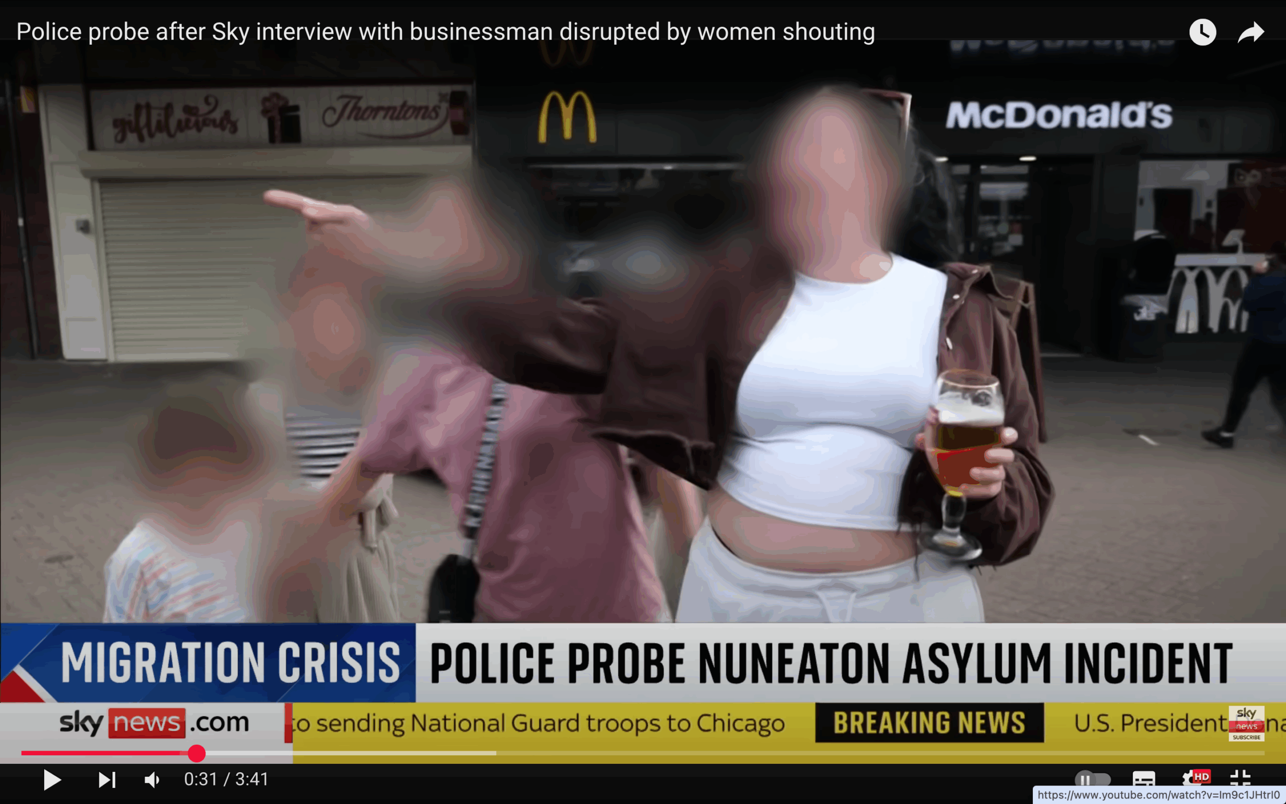 During the interview, a group of women approached them and began shouting, with audible references to rape. The footage then shows members of the public being subjected to what the police have described as racial abuse, with one individual reportedly being pushed.