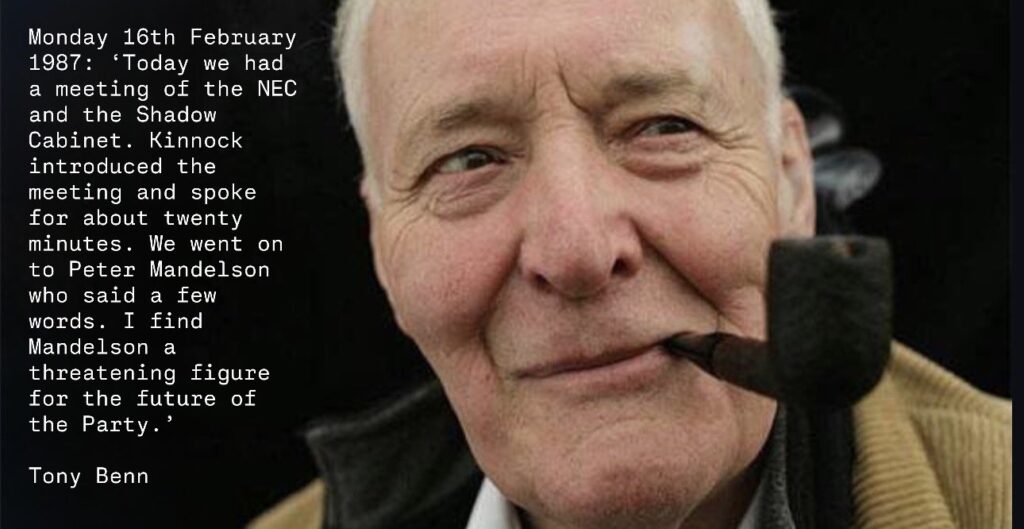 Tony Benn’s warning about Peter Mandelson was not moral panic. It was structural. When Benn wrote in 1987 that Mandelson was “a threatening figure for the future of the Party,” he was not anticipating a scandal sheet headline or a tabloid exposé. He was diagnosing a politics that would ultimately detach power from accountability so completely that nothing would shock it anymore.