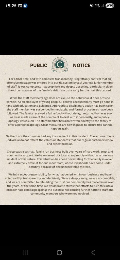 Imagine my shock and disgust when my little cousin received the receipt from the venue manager and on it was an insult so vile it left us reeling. We had been referred to as “depressed f***s.” Yes, in a place that was supposed to be offering comfort and solace, we were mocked and demeaned. Beyond anger, the feeling was one of profound betrayal. Respect and decency should be the minimum at a wake, yet here we were, treated with contempt by the very people entrusted with hosting a sensitive family gathering.