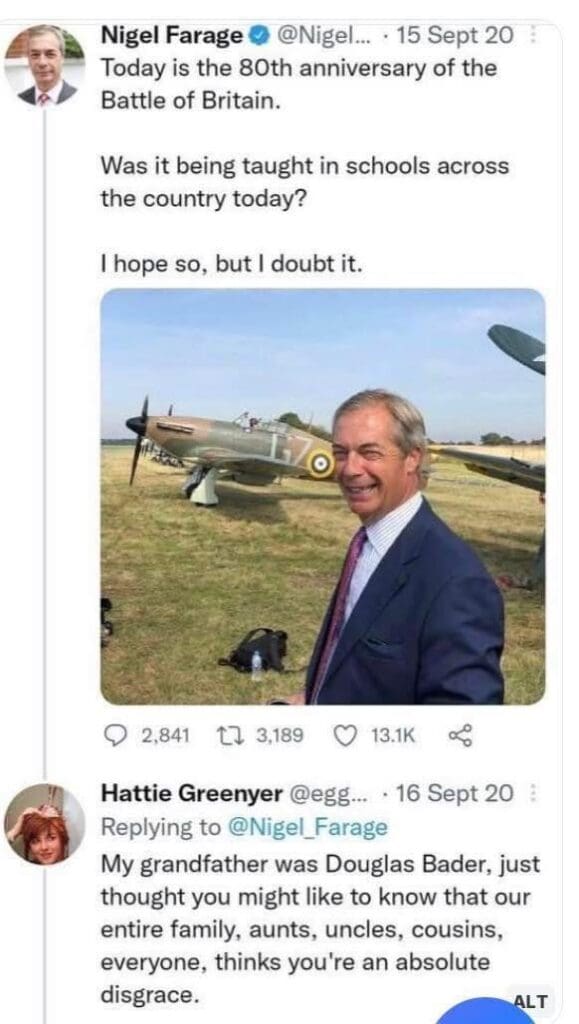 The family of Douglas Bader makes it clear to Nigel Farage that they want nothing to do with his politics.