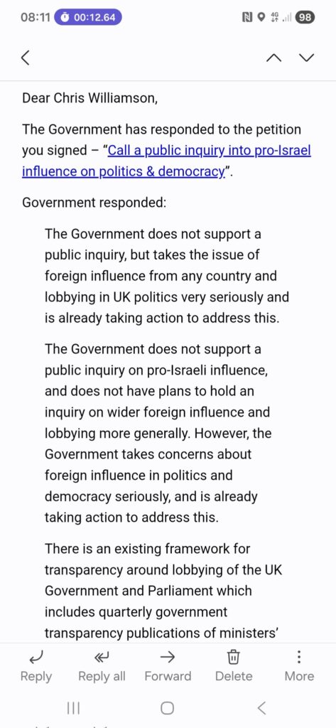 Thus, the refusal by the UK government to launch a public inquiry into alleged foreign-linked influence in British politics is not surprising and increasingly looks less like confidence in existing safeguards and more like an unwillingness to test them. When Andy Kalil launched his petition in January 2026, he pointed to concerns about the role of pro-Israel lobbying and funding networks in shaping UK policy during the ongoing crisis involving Israel, Gaza, and the West Bank. The government’s rejection on April 17, citing transparency rules and reforms such as those stemming from the Rycroft Review, has done little to settle those concerns.